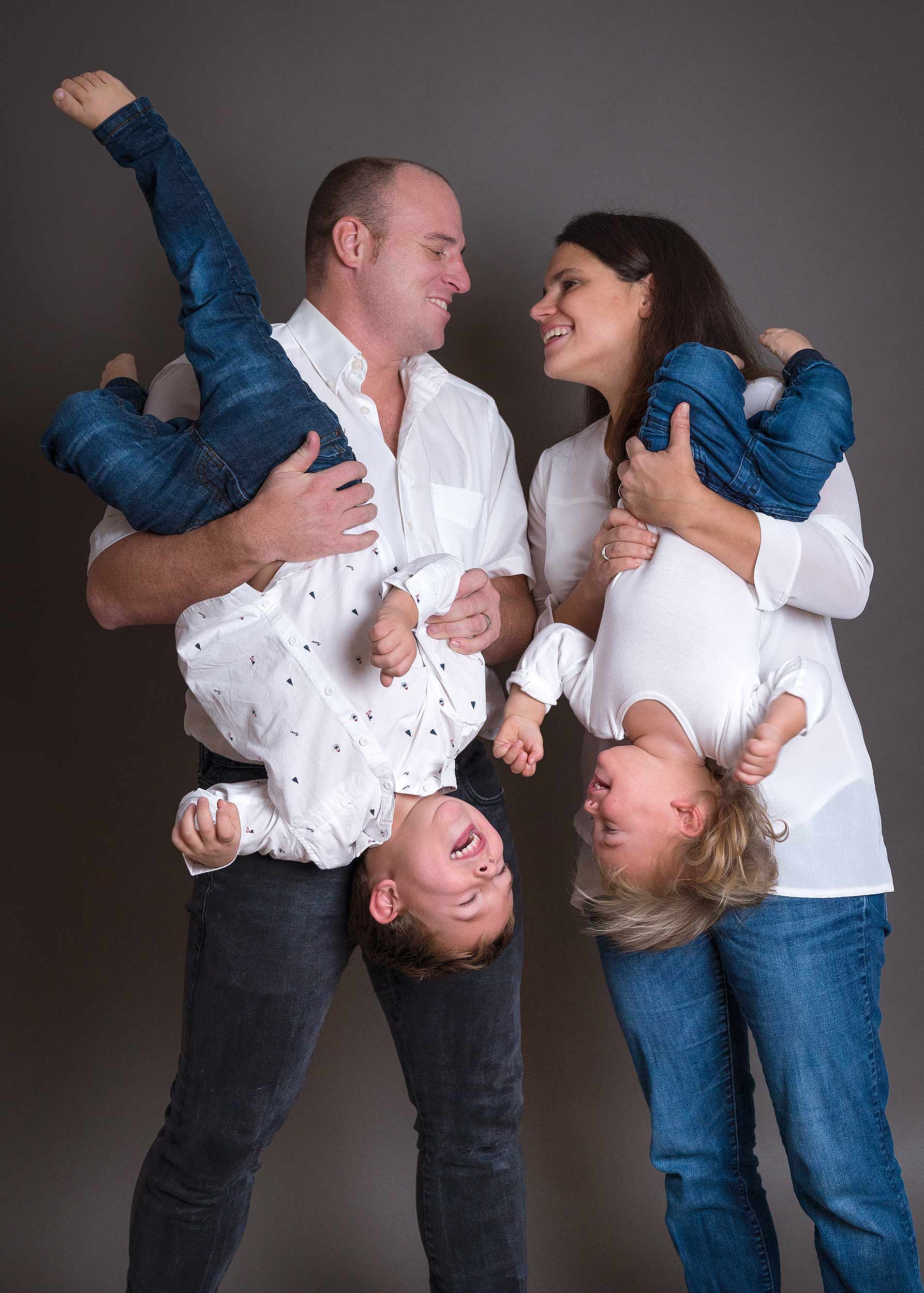 Ein Familien-Shooting mit kleinen Kindern läuft meist nicht gesittet, sondern oft völlig chaotisch. Der Eine hat nicht geschlafen und ist müde, die Nächste erkundet viel lieber das Studio anstatt in die Kamera zu lächeln. Oft fragen die Mütter und Väter mich wenn sie mein Studio verlassen mit geducktem Kopf „Haben wir denn überhaupt ein schönes Bild gemacht?“ Ganz klar ist die Antwort immer ein ganz lautes JA! Wir haben viele tolle Bilder gemacht. Wenn die Eltern dann die Galerie zur Auswahl der Bilder bekommen sind sie ganz überrascht wie toll die Bilder geworden sind. Ein Bild lebt nicht davon dass 4-6 Leute gleichzeitig in die Kamera schauen, die schönsten Bilder bekommt man wenn man Quatsch macht mit den Kindern, wenn die Kids ungezwungen mit Papa albern und mit Mama kuscheln.